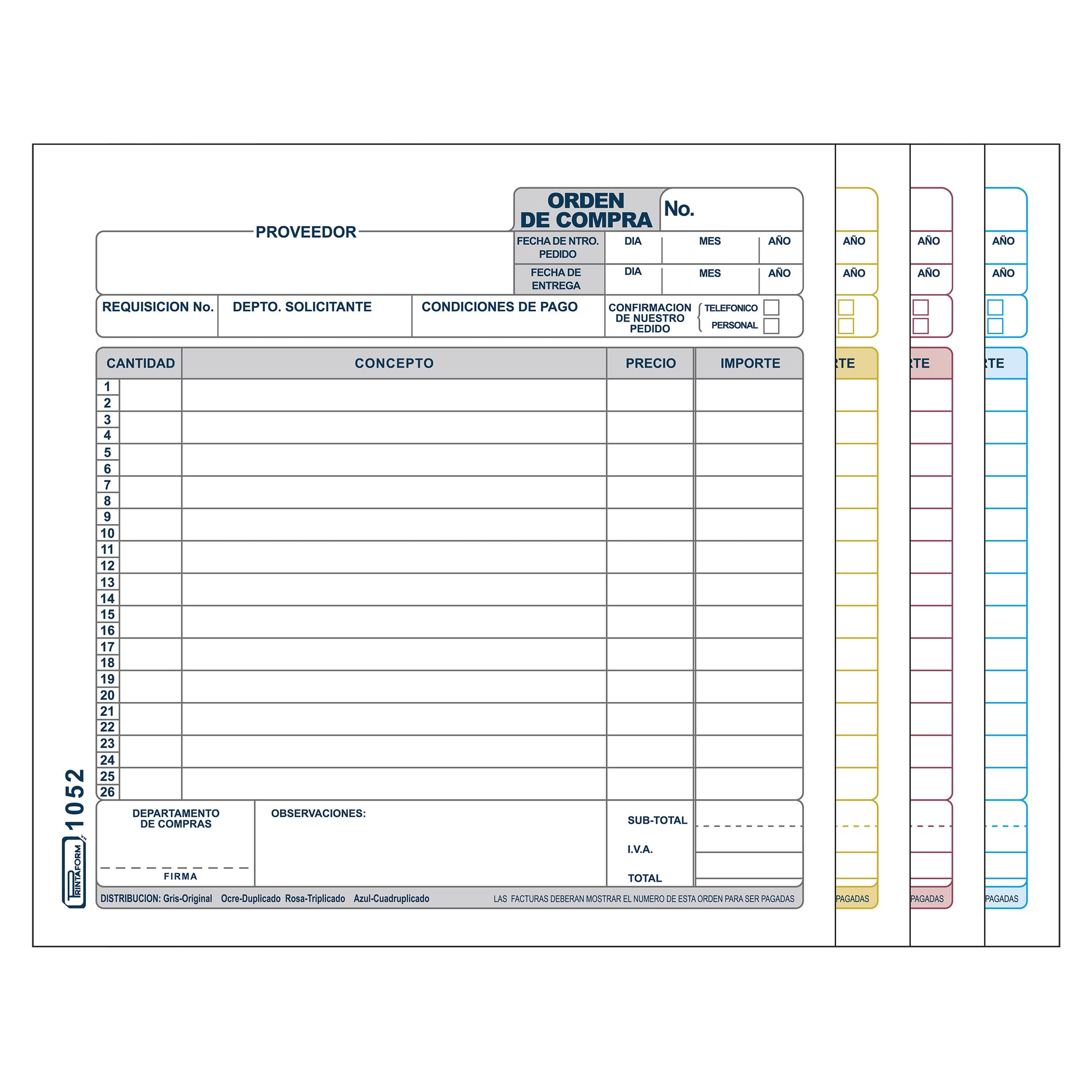 Orden de Compra B-1052 (Paq. c/3 blocks)
